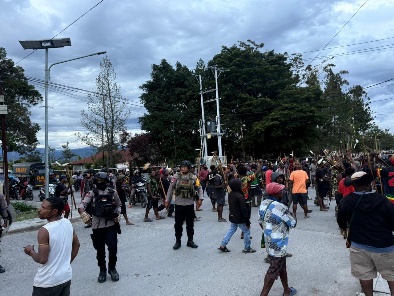 Menindaklanjuti situasi tersebut, personel Polres Jayawijaya bersama Brimob yang dipimpin langsung oleh Kapolres Jayawijaya bergerak cepat ke lokasi kejadian. Pada pukul 18.06 WIT, aparat keamanan berhasil melerai dan mengendalikan massa yang bertikai, sehingga situasi dapat dikondisikan dan tidak meluas.