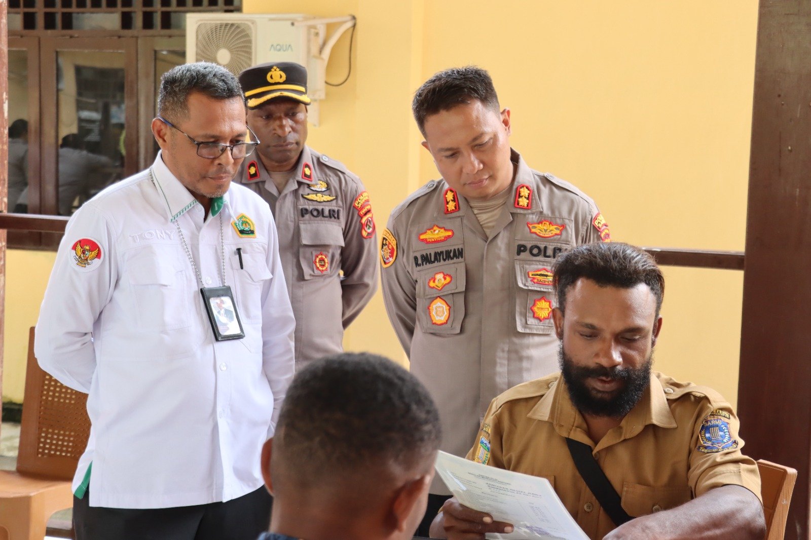 Dalam kegiatan tersebut, Kapolres Sarmi tampak berinteraksi langsung dengan panitia dan para calon siswa (casis), sekaligus melakukan pengecekan terhadap kelengkapan administrasi yang sedang diperiksa. Ia juga memberikan semangat kepada para casis agar tetap percaya diri dan mengikuti seluruh tahapan seleksi dengan baik.