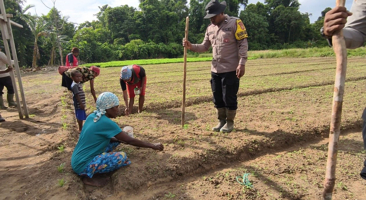 Kegiatan ini dipimpin langsung oleh Kapolsek Bonggo Iptu Yustus Maudul, S.E., M.Si, didampingi Wakapolsek Bonggo Ipda Daud Pararem, serta dihadiri Kepala Kampung Rotea Leonardus Uduas, Ketua Kelompok Tani Titus Buweser, dan Ondoafi Kampung Rotea Zet Buweser.