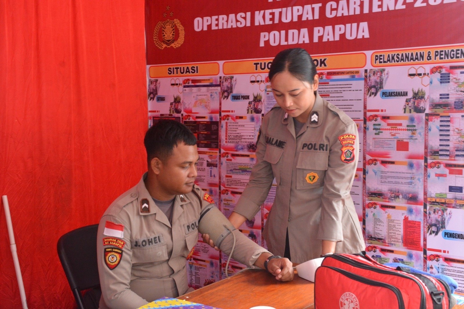 Papua – Subsatgas Dokkes Polda Papua melaksanakan kegiatan pemberian vitamin dan pemeriksaan kesehatan bagi personel yang bertugas di Pos Pelayanan Operasi Ketupat Cartenz 2026, Kamis (19/03/2026).